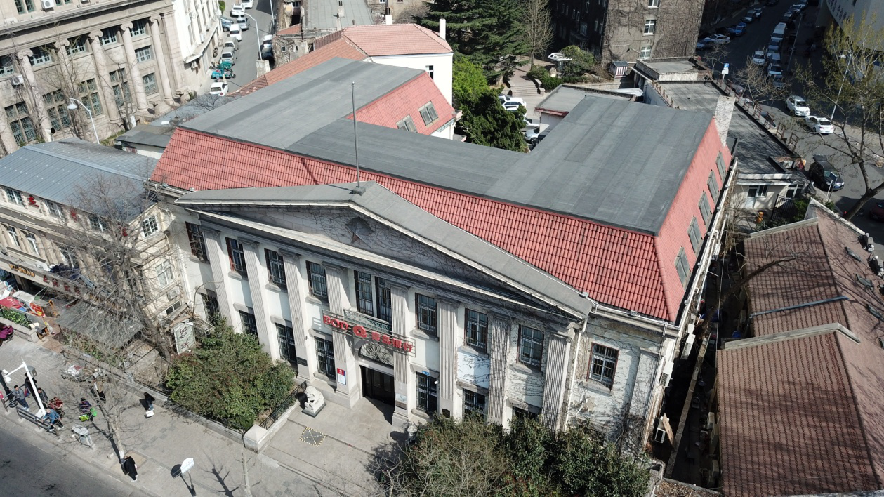 橫濱正金銀行青島支店舊址,位于市北區(qū)館陶路1號,仿歐式公共建筑風(fēng)格。占地7.17畝,基地面積4780平方米,建筑面積1787平方米,磚石木結(jié)構(gòu),地上二層,地下一層,有閣樓?;◢徥龌?,水刷灰墻面紅瓦折坡屋面,上有氣窗。正門西向,主立面有8根貼面石柱直達(dá)二層窗頂部,中央大三角山墻突出層線飾條,門上層有鐵花柵欄露天涼臺。建筑上部大廳高5.5米,廳內(nèi)有方型藻井。二層的正金大樓整體呈長方形。
