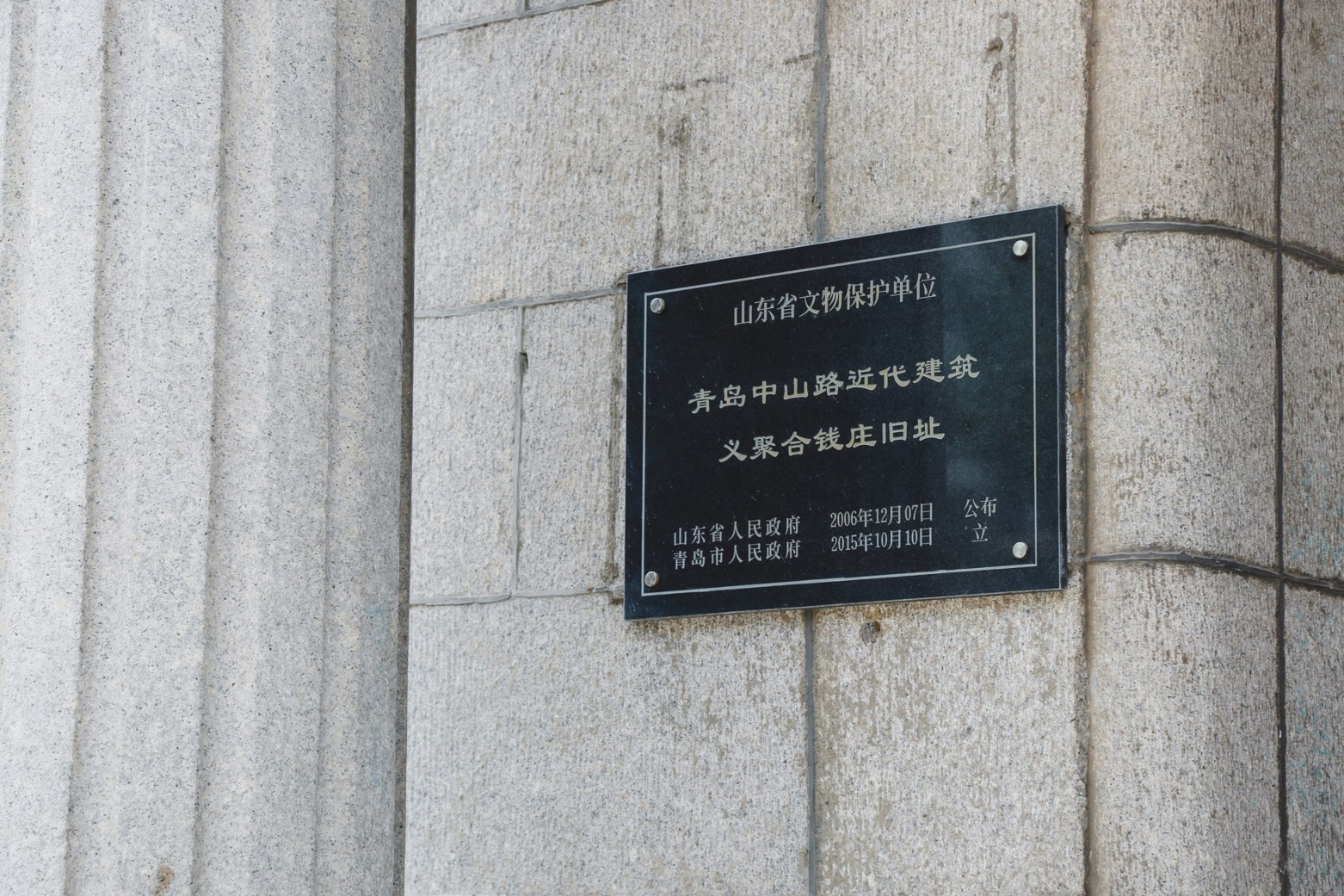 義聚合錢莊舊址,位于市南區(qū)中山路82號。1927年,山東掖縣人王德聚以其本人及二哥王聚義、弟弟王聚合弟兄三人名字的末后一字為名,于1928年2月開設(shè)了義聚合錢莊。建筑面積1000余平方米,磚石木結(jié)構(gòu),坐北朝南。地上三層,有閣樓及地下室?;◢彺质龌疾刍◢徥N墻面,坡頂屋面上有氣窗,主立面東向,中軸線式布局,建筑格調(diào)典雅美觀,有較強的裝飾感。