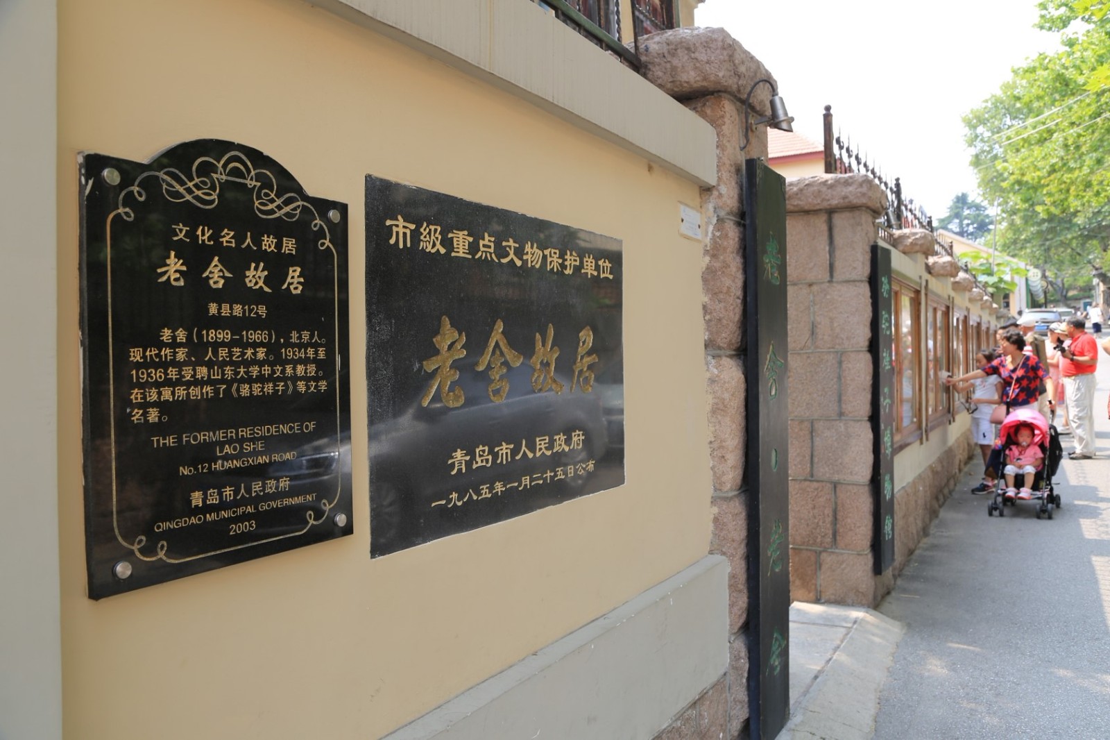 老舍故居,位于市南區(qū)黃縣路12號,坐北朝南,占地面積1440平方米,建筑面積400平方米。磚木結構,坐北朝南。地上二層,有閣樓。是一座“一”字形二層樓房?;◢弾r基石,黃色抹灰外墻,紅色坡屋頂。老舍在國立山東大學中文系任教期間,在此居住,并創(chuàng)作了著名的長篇小說《駱駝祥子》,中篇小說《文博士》等一批優(yōu)秀作品。2010年5月建為駱駝祥子博物館,成為我國首家以現(xiàn)代文學名著命名的專業(yè)博物館。